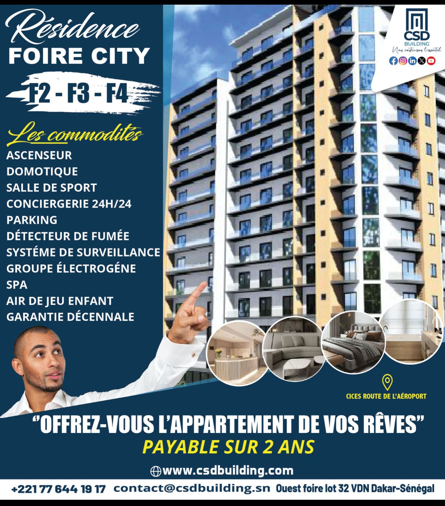 Appartement Nos Realisation A Dakar contact mai 24, 2025 1 Comment —Choisissez votre havre de paix. INVESTISSEMENT-CSD-BUILDING– VOUS DÉSIREZ INVESTIR DANS L’IMMOBILIER ?– DES APPARTEMENTS AUX FINITIONS EPUREES VOUS ATTENDENT CHEZ NOUS .𝐂𝐎𝐍𝐓𝐀𝐂𝐓𝐄𝐙-𝐍𝐎𝐔𝐒 𝐀𝐔 : +221.77.644.19.17 / +221.33.843.30.30#immobilierdeluxe #immeuble#appartement #achat #immobilier #investissement #maisonavendre#appartementavendre Share Link Navigation de l’article PrevOFFRE SPÉCIALE Venez découvrir la Résidence Foire city